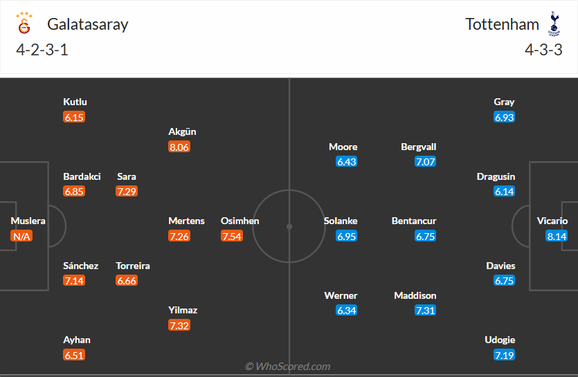 Dự đoán tỉ số trận đấu: Galatasaray 2 – 3 Tottenham (Chọn Tottenham và Tài trận)